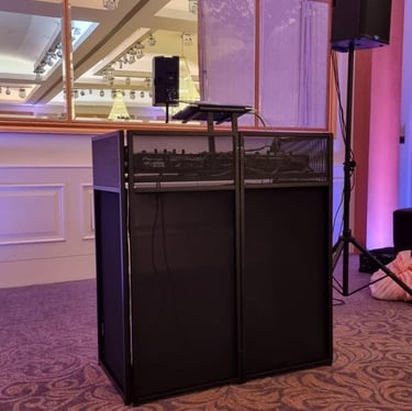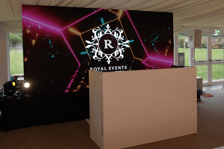 This option is subject to your preference, mix and match the DJ Booth to the theme of your choice, either White, Black or Personalised Fascias Click Below to see a video